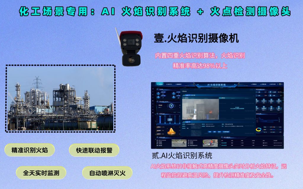 某化工企业生产车间,设备老化线路短路引发火灾。初期烟雾稀薄,传统烟雾探测器没报警。而AI火焰烟雾双重探测系统的高清摄像头捕捉到微弱火焰闪烁,立即发出警报,通知相关人员及时处理,避免火灾进一步蔓延。还有一次,化工企业仓库里,因货物堆放不规范,部分货物自燃产生烟雾。由于烟雾产生位置较隐蔽,人工巡检没发现。但AI火焰烟雾双重探测系统很快检测到烟雾浓度变化,发出警报,工作人员及时赶到扑灭了火源。