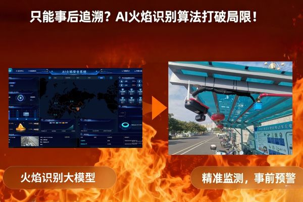 AI 火焰检测技术就像一位敏锐的火情 “猎手”,彻底摆脱了人眼观察和普通传感器的局限。它经过海量火焰图像数据的训练,能精准捕捉火焰独特的颜色、形状和动态变化,哪怕是强光直射、光线昏暗,或是烟雾遮挡的场景,都能快速分辨出真正的火焰信号。正午阳光反射在车棚金属件上,普通传感器可能误判报警,AI 却能通过分析火焰的闪烁频率和光谱特征,稳稳排除干扰。更关键的是它的灵敏度 —— 火焰刚冒头,还没形成规模,系统就已经捕捉到信号并发出警报,比传统检测方法提前数分钟甚至数十分钟预警,为救援争取了黄金时间。
