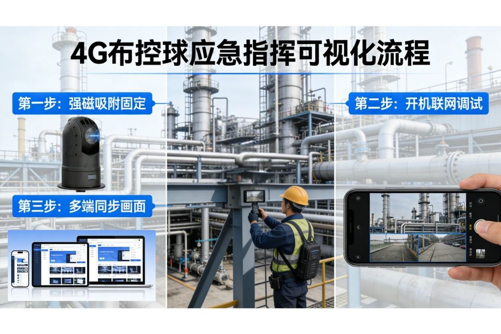 化工厂检修现场环境复杂,管道密集,固定摄像头无法覆盖所有作业面。安全员携带一台便携式布控球到场,利用机身底部的强磁吸附装置固定在钢结构上,开机、联网、调试云台角度,全程耗时不足1分钟,手机端和监控中心即同步获取高清画面。这种部署效率,对于分秒必争的应急抢险或周期性检维修作业而言,具有显著价值。