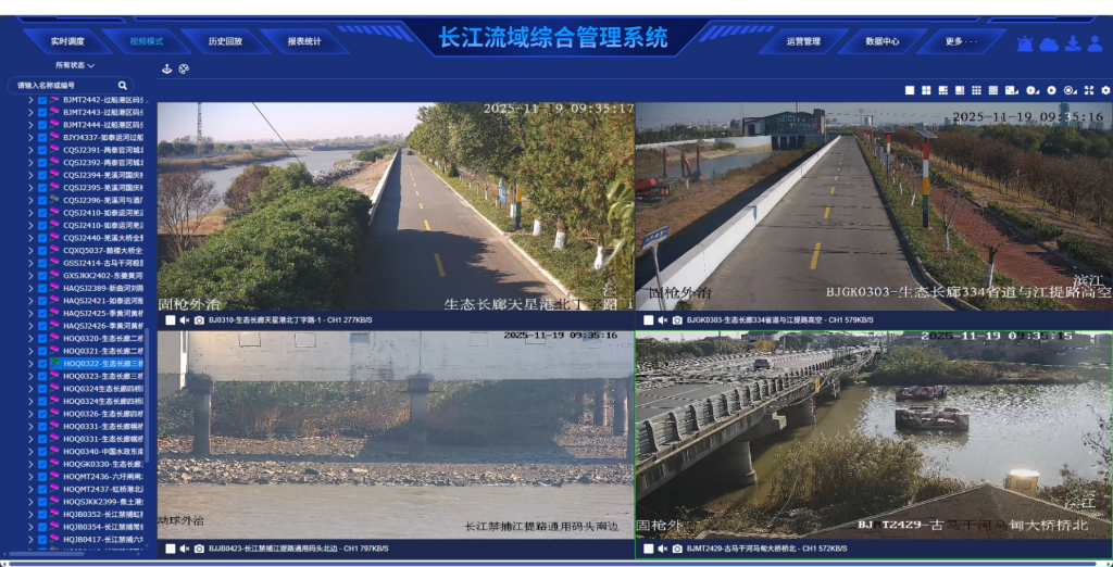 多画面实时预览与历史回溯:支持多路视频同时预览(如生态长廊路况、长江禁捕码头等场景),并可通过 “历史回放” 功能追溯事件过程,为执法取证、事后分析提供依据。